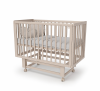 • Боковая стенка мгновенно снимается - превращение в приставную кроватку. Малыш спит рядом с мамой.