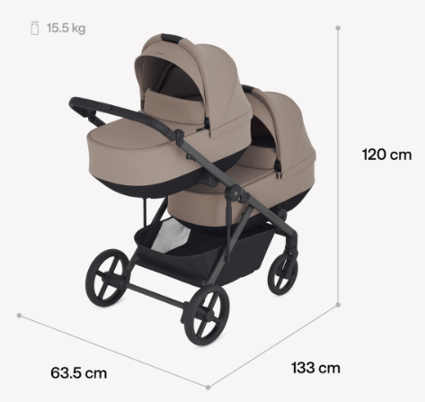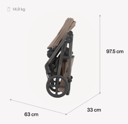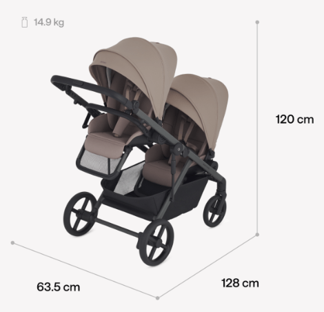 - Вес коляски с двумя сиденьями: 14,9 кг