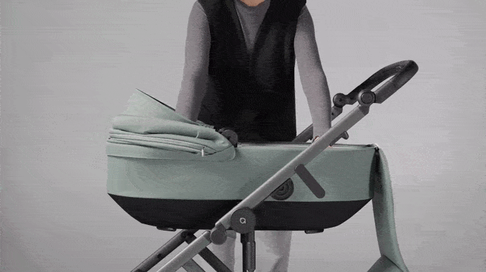 Просто нажмите на кнопки, чтобы легко отсоединить люльку или сиденье. Система памяти в адаптерах удерживает кнопки нажатыми, пока вы без усилий поднимаете люльку или сиденье.
