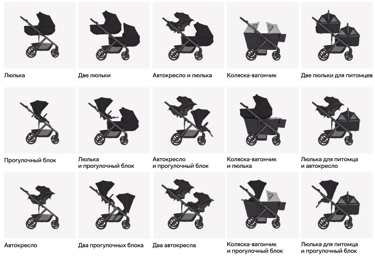 Modu — первая коляска-вагончик, созданная расти вместе с реальной семейной жизнью. Одна рама — бесконечные возможности: от новорождённого до близнецов и детей разного возраста, от переноски для питомца до коляски-вагончика — Modu адаптируется к каждому этапу и любой ситуации, будь то город, бездорожье или во время путешествий. 35+ комбинаций под ваш стиль жизни. Modu легко подстраивается под ваш день — просто комбинируйте модули и меняйте конфигурацию в нужный момент.