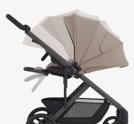 Благодаря реверсивному сидению прогулочный блок легко адаптируется к возрасту и потребностям ребенка: для новорожденных — лицом к родителям, для маленьких исследователей — лицом к миру.