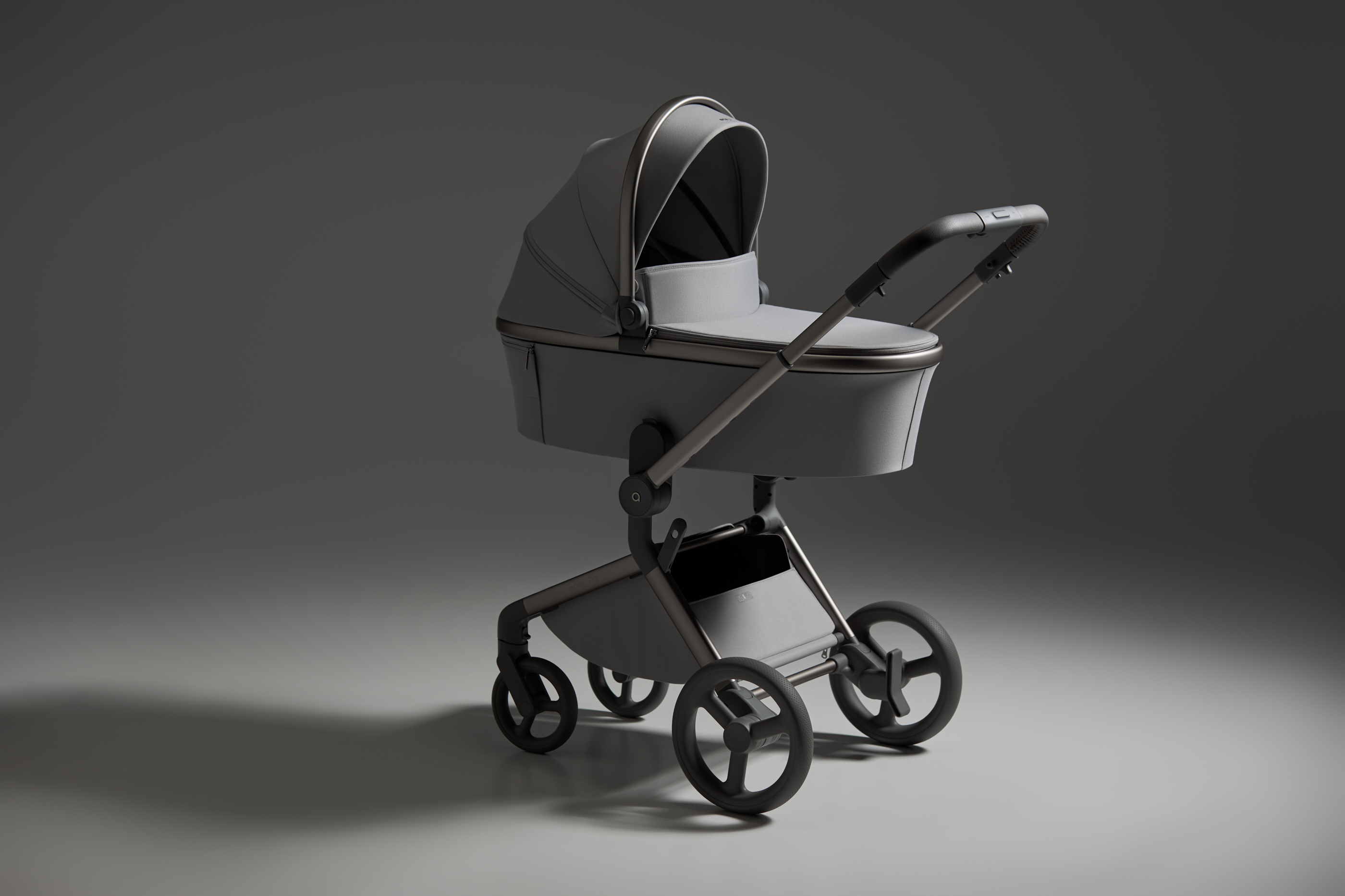 Теперь — в полностью монохромном образе, где ткань и колёса создают идеальную гармонию.